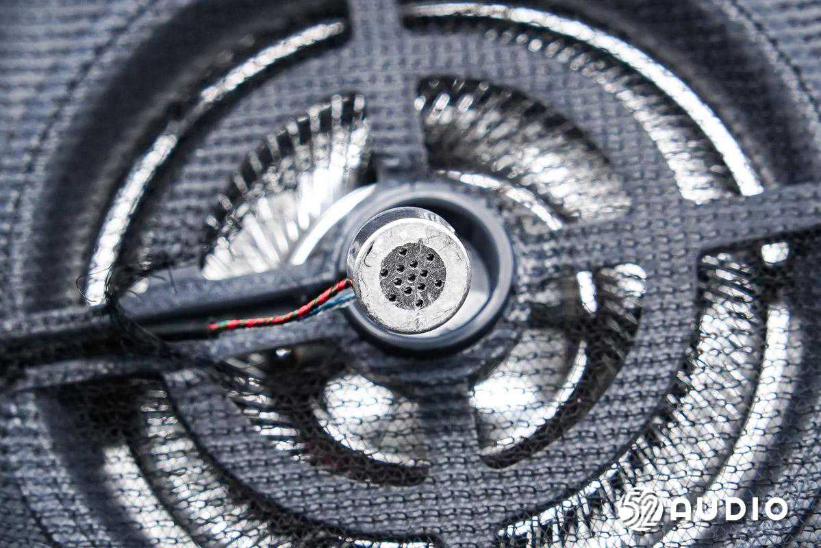 扬声器单元正面特写,采用了镀钛复合振膜。