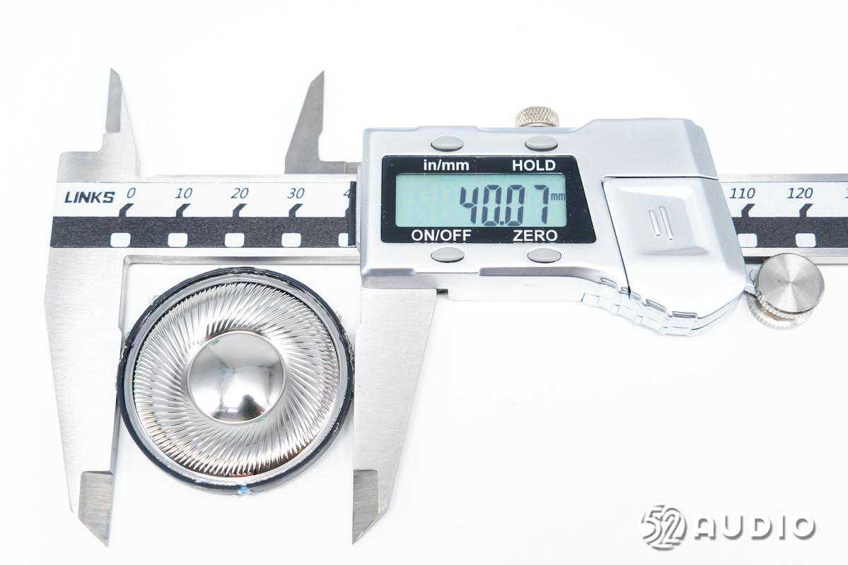 经我爱音频网实测,扬声器尺寸约为40mm。