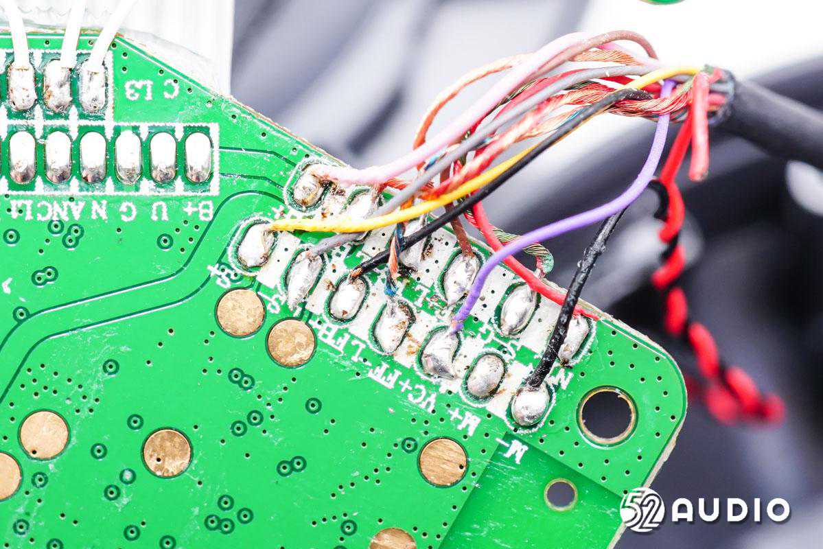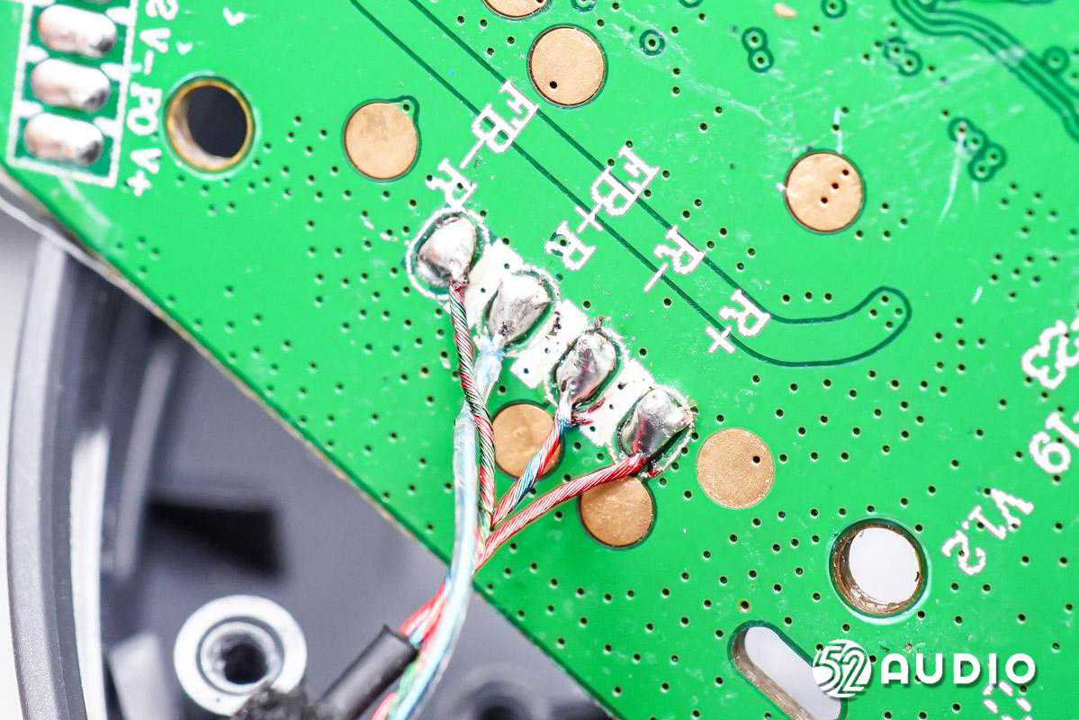 PCB板另外一侧电路一览,四周导线焊接,连接右耳、扬声器和电池。