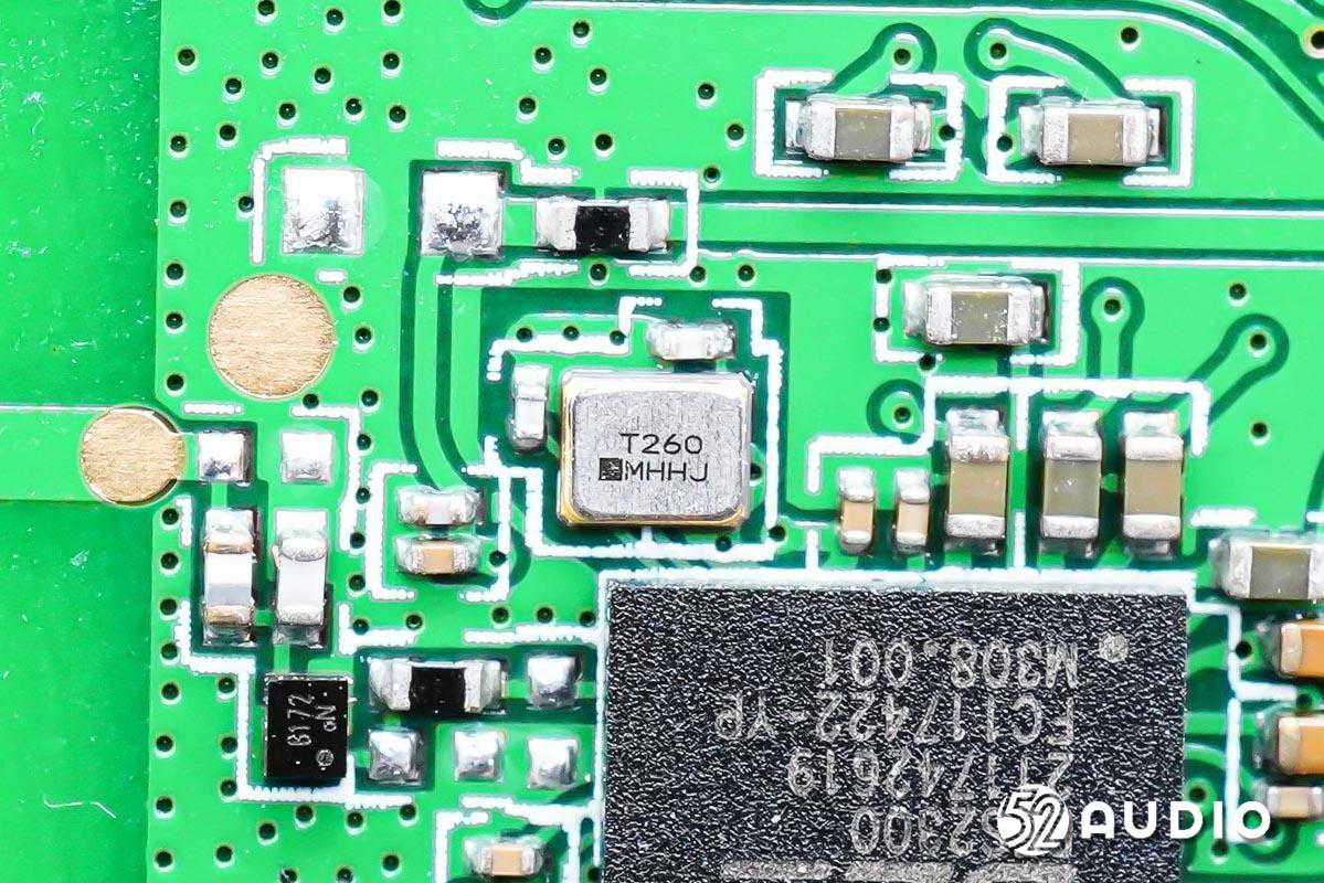 镭雕MD25D126的MEMS麦克风特写,用于降噪功能拾取外部环境噪音,同样来自敏芯微电子。