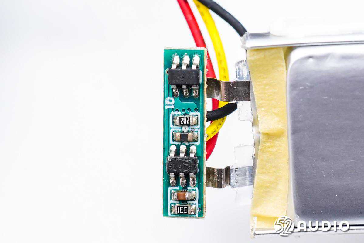 左耳腔体内部电路一览,包括电池单元和一块PCB板。