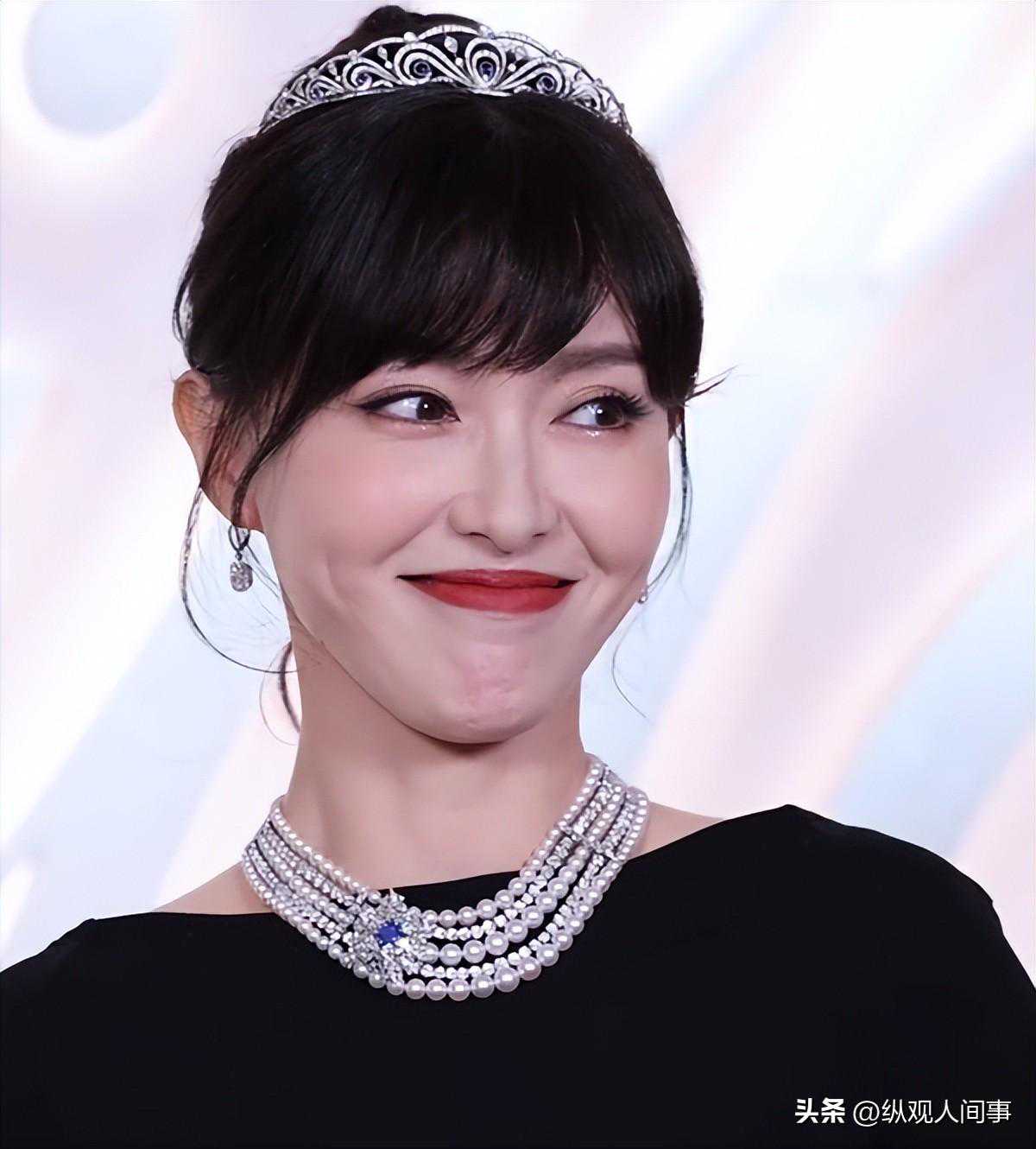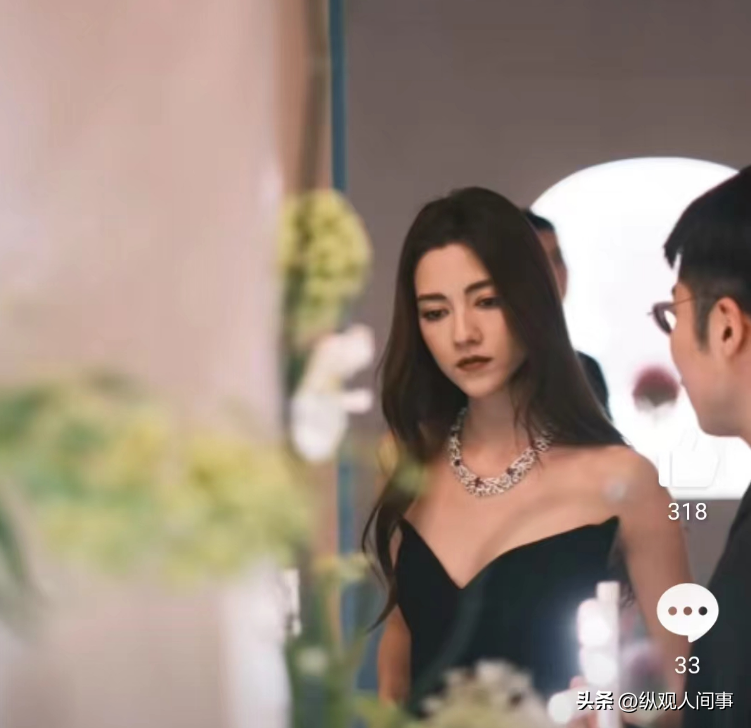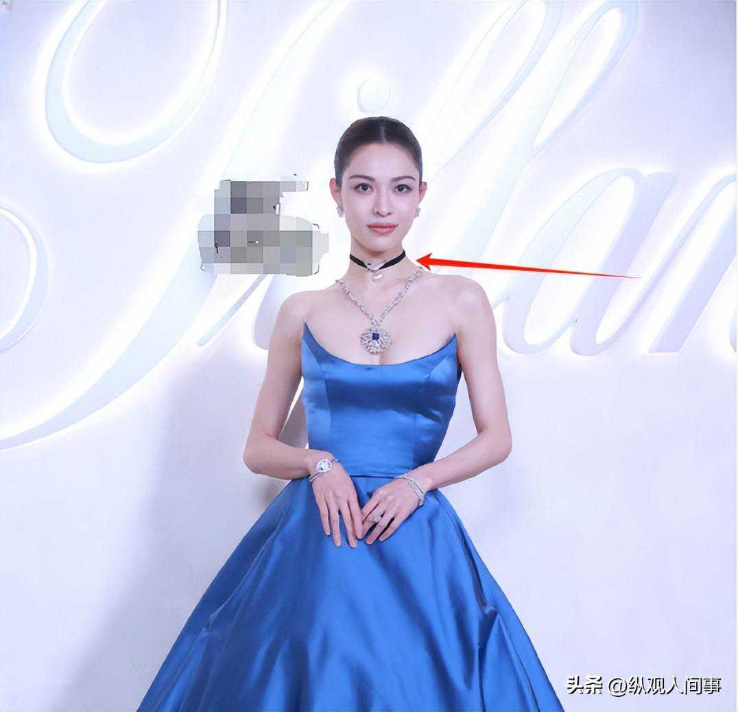 比裙子更亮眼的是钟楚曦头上手上戴的珠宝,尤其是脖子上那条点缀着硕大钻石的项链,一看就价格不菲。