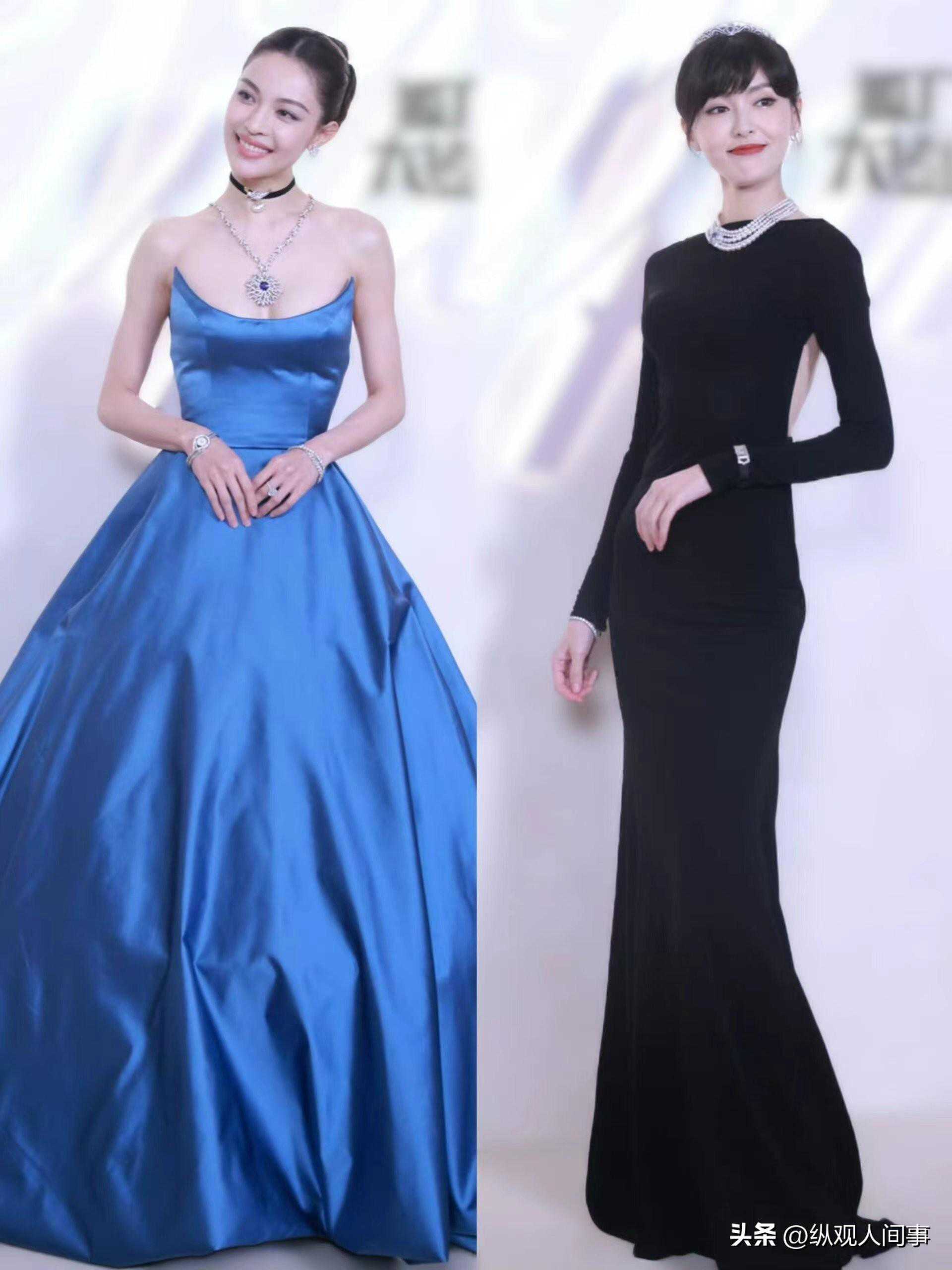将31岁钟楚曦和41岁唐嫣放在一起,一个珠圆玉润大气明艳,一个宛如黑天鹅般高贵典雅,简直不分上下。