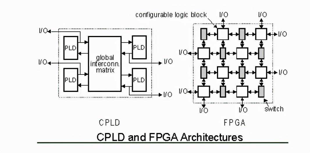 CPLD是复杂可编程逻辑器件,也是一种制造后可重新编程的器件。在这个意义上,它们类似于FPGA。然而,也有显著的差异。FPGA由多个逻辑单元组成,而CPLD由较少的逻辑单元组成。由于它们的尺寸,CPLD通常更便宜和更快。然而,CPLD的功能非常有限,它们不能用于构建复杂的系统,它们通常用于简单的设计,如胶合逻辑[1]。