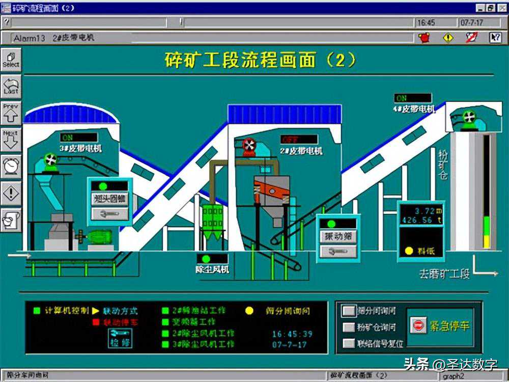 ②重要设备如圆锥破碎机等受到监测的轴瓦温度、电机负荷电流和稀油站工作参数信号也参与联锁,在信号超限时自动停机,以防止设备受损;