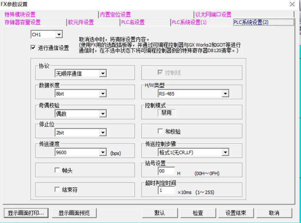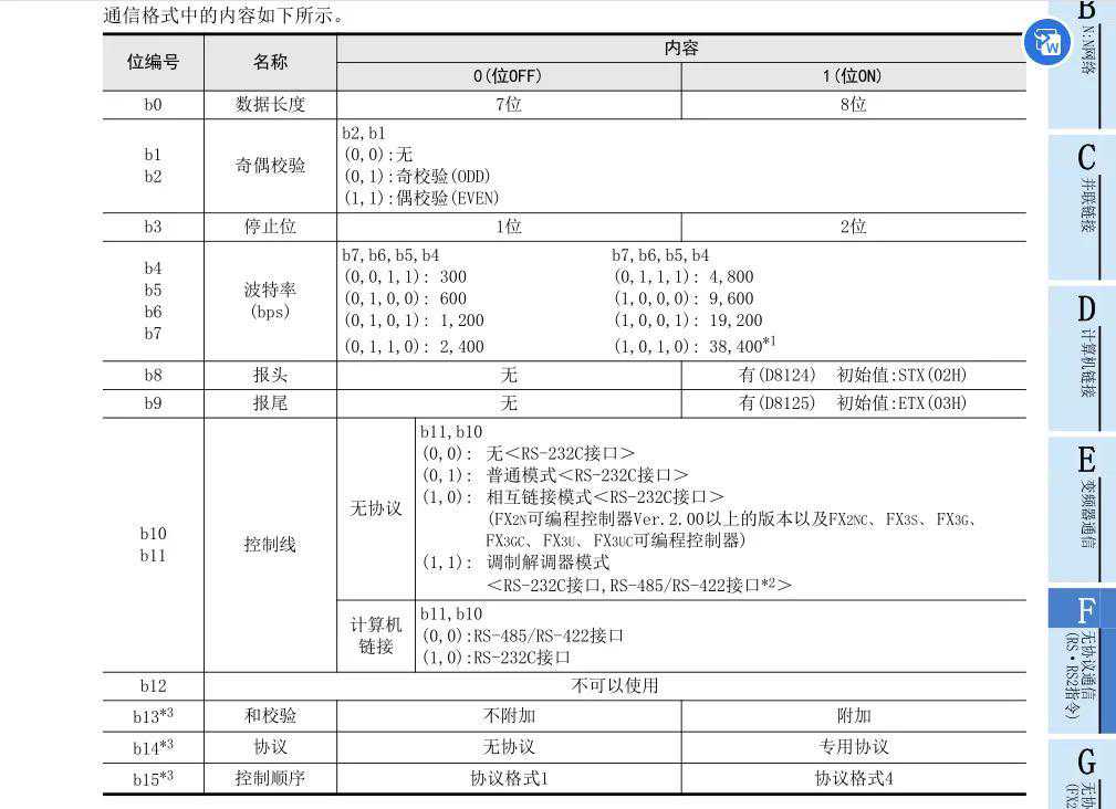 ②、直接可在FX3∪里PLC参数设置,但也可在程式里D8120里赋参数值;(设置完下载PLC内要断电重启,才能生效)