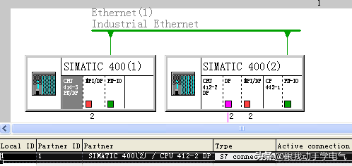 将两个下载到PLCSIM中的站点CPU切换到RUN-P模式,打开Netpro查看激活的连接状态,可以看到连接已经建立成功,如图17