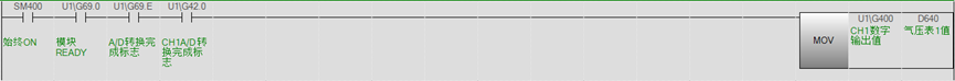 硬件搭建好之后,就可以使用PLC实时读取压力值了。程序范例如下: