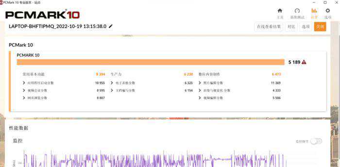 从上面三个主要考察CPU性能的结果看,33W的性能释放,的确使得H3CBookUltra14T要比相近配置的笔记本有更好的性能表现。无论普通消费者还是商用领域相关人士,看到这样的成绩应该都是很满意的。而PCMARK10的5189分,则进一步证明了它更优秀的性能表现。