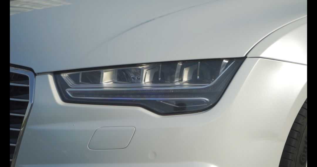 最后转到车头,还是奥迪家族化的“大嘴”,除了整体看上去更扁更宽之外,就剩这个「矩阵式LED大灯」比较吸引人了,但是相比起新款A7的大灯,我会觉得17款A7的大灯远远的看过去尺寸有点显小,横向要是能再大那么一点,就更协调了。
