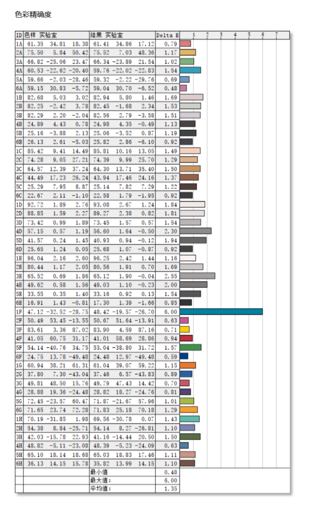 实测原生模式色准Macbeth48色色准测试结果