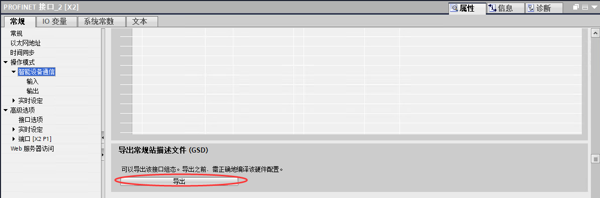可以给通讯接口区域重命名、修改输入/输出属性以及调整区域长度,更具体的设置可以进入到“智能设备通信”属性下每一个定义好的接口区域完成,如下图所示。