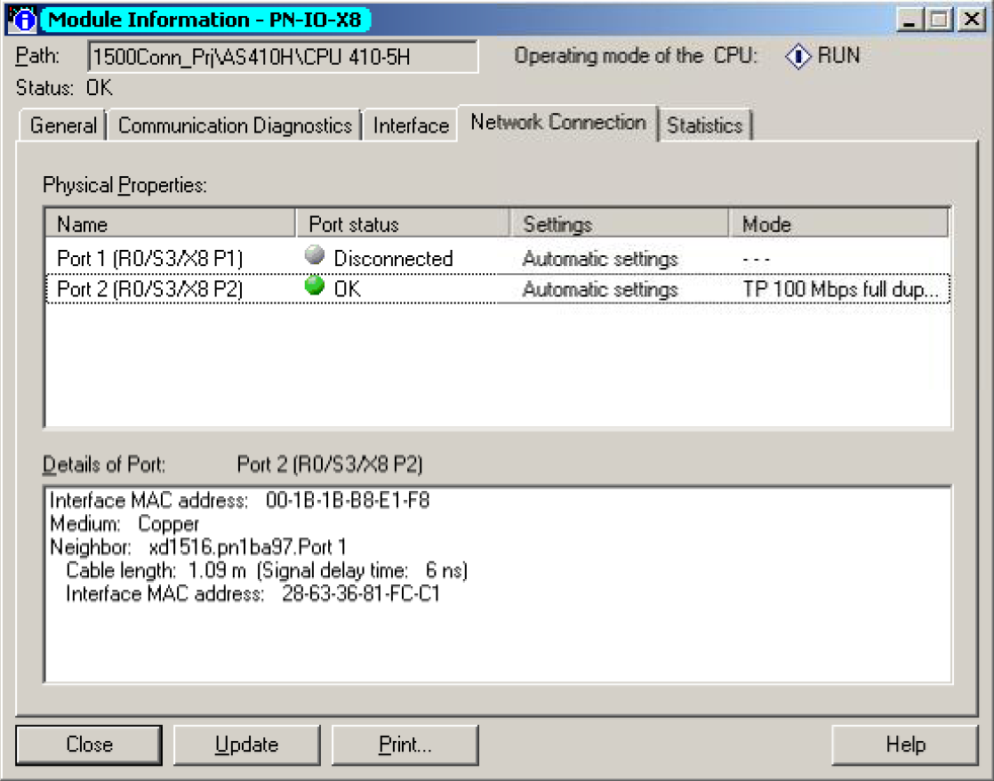 借助这些在线端口和模块信息,可以方便地判断出当前的通讯状态。只要物理连接正常,端口信息中就可以显示其连接伙伴方的信息,这对于现场通讯问题的诊断提供了更多便利。