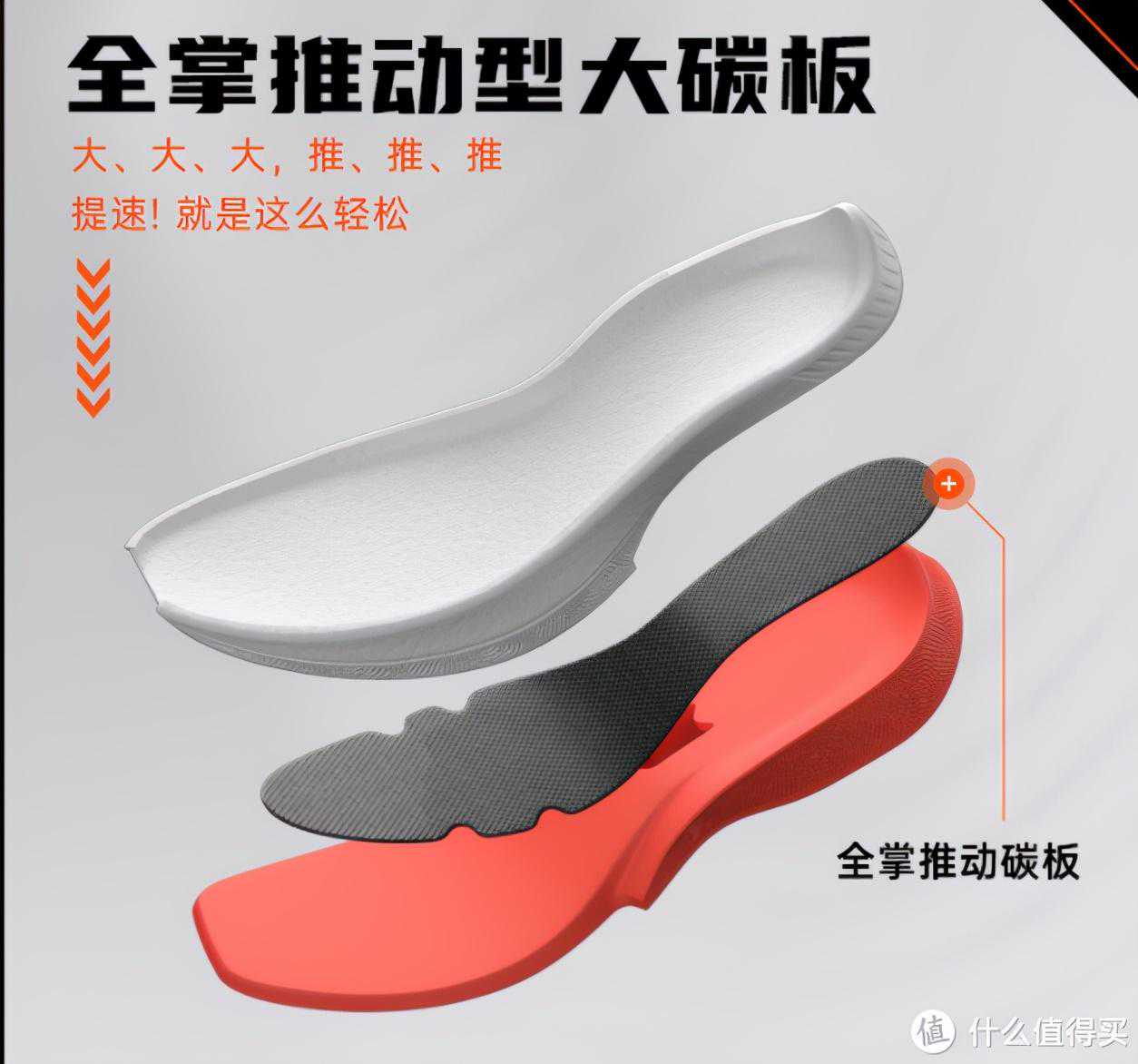 虽然说特步把自己的碳板也归类到推进系统里面,但我感觉特步的碳板推进能力不足,更多的还是起到抗扭和支撑的作用,还是一双传统性能表现的跑鞋。