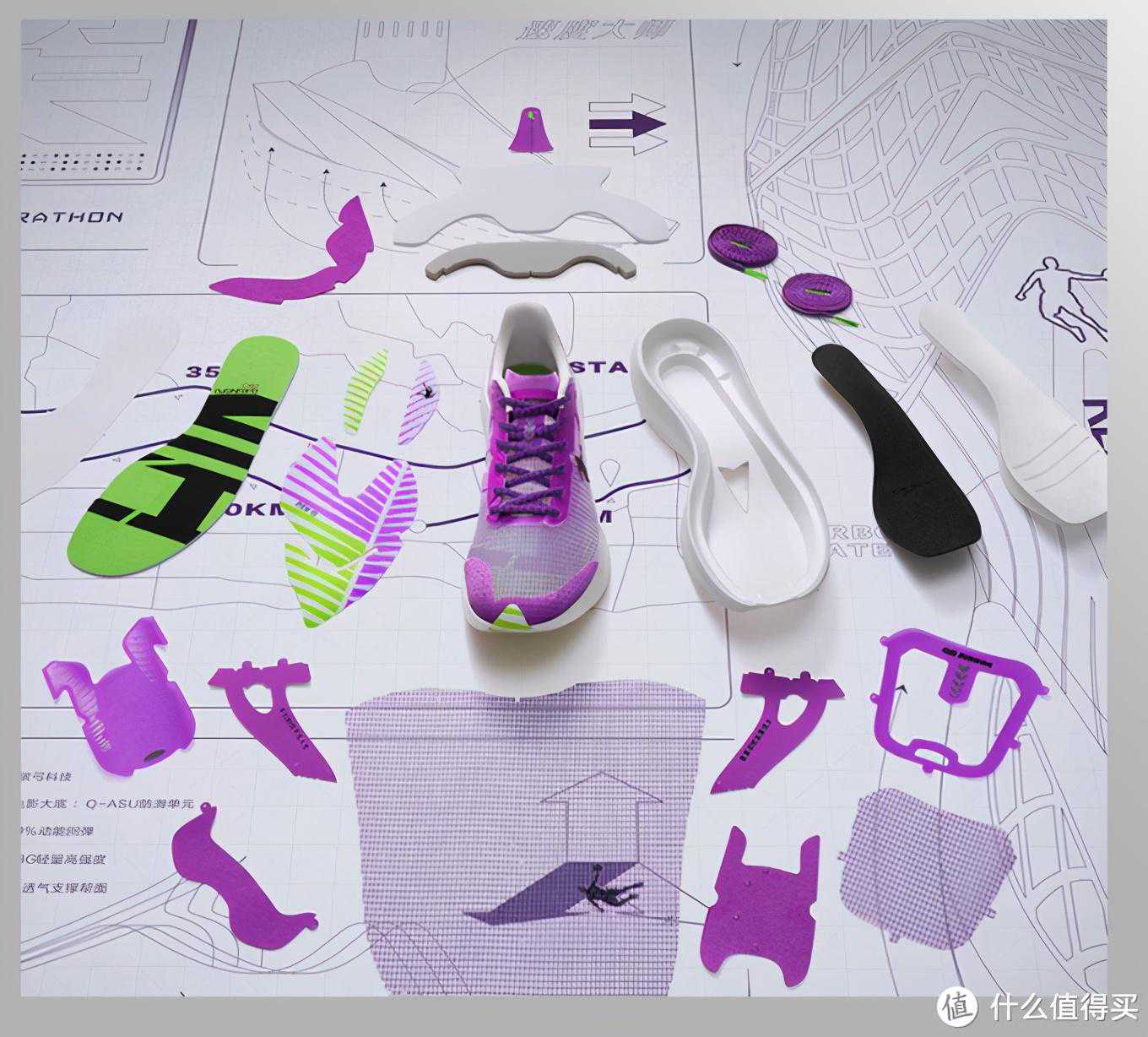 看拆解件,应该是nike的那种双层缓震材料全掌碳板三明治结构,成熟的设计方案应该不会出错。外底的橡胶爆炸图和上脚图不一样,爆炸图是比较传统的外底橡胶设计,上脚图是nike的那种。个人还是喜欢传统的,因为比较耐用吧,因为看其他配置,应该不在乎这点重量了。