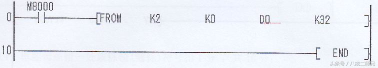 5、CC—Link网络中,Q型主站设定D1000是从站的RX区域首地址,D1040是从站的RWr区域首地址,问3从站在主站的RX区域D1004~D1005;3从站FX2N的PLC读取Q型主站发给6从站的占用站点为零。设FX2N的CC—Link从站模块号为2。