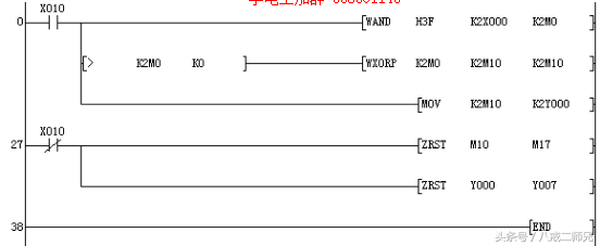 (3)WAND为逻辑与指令,是将两个源操作数按位进行与操作,结果送指定元件,当X10接通后,