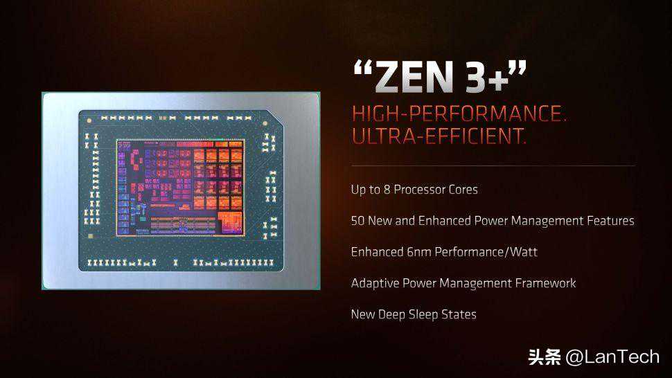 今年的CES上,苏妈发布了全新的Ryzen6000系列移动平台处理器,采用6nm工艺,基于Zen3+架构: