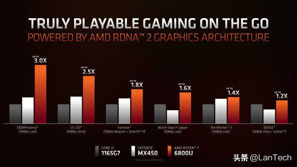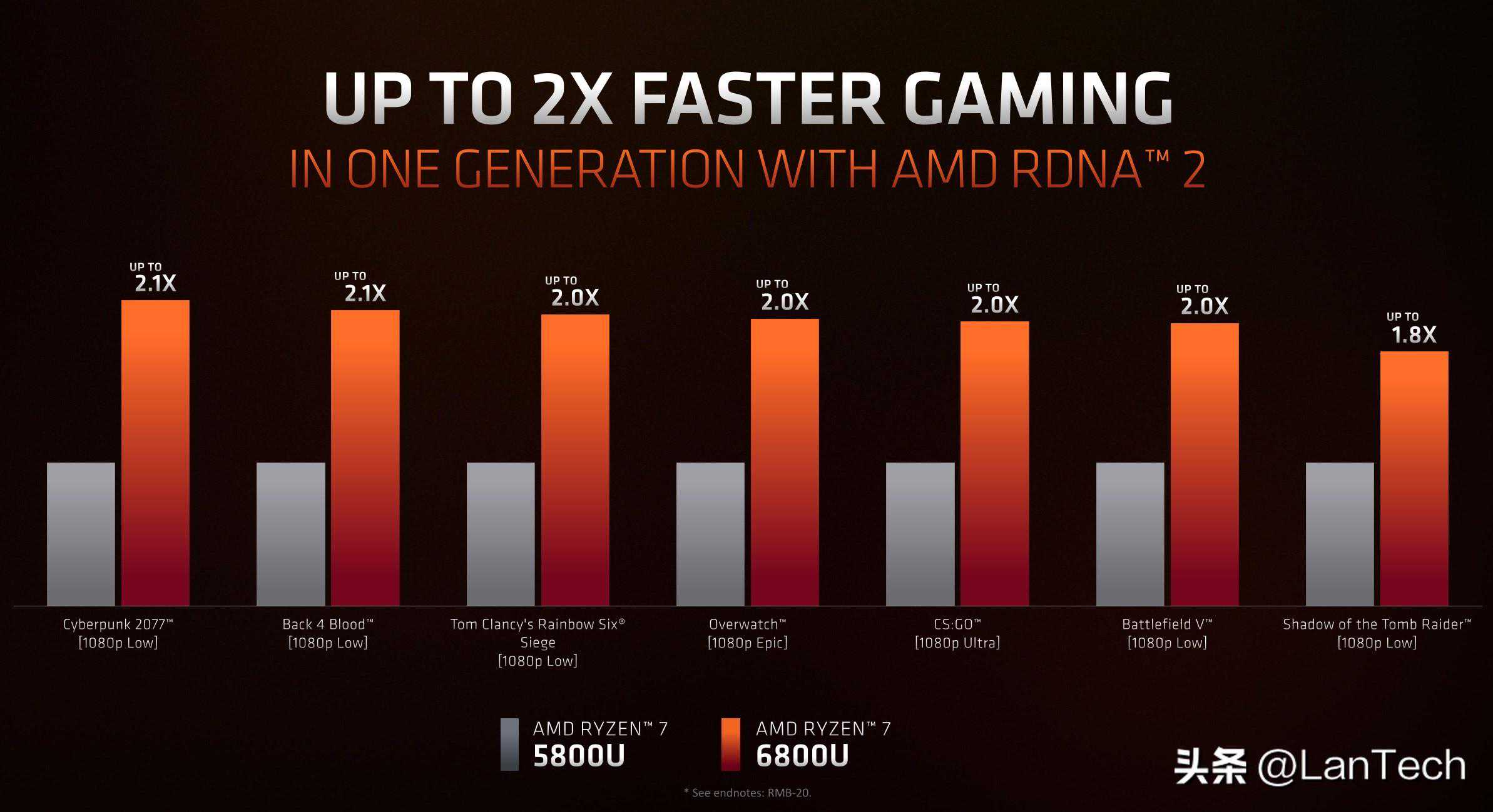 由于RDNA2架构的引入,使得性能相比前代有了成倍的提升:
