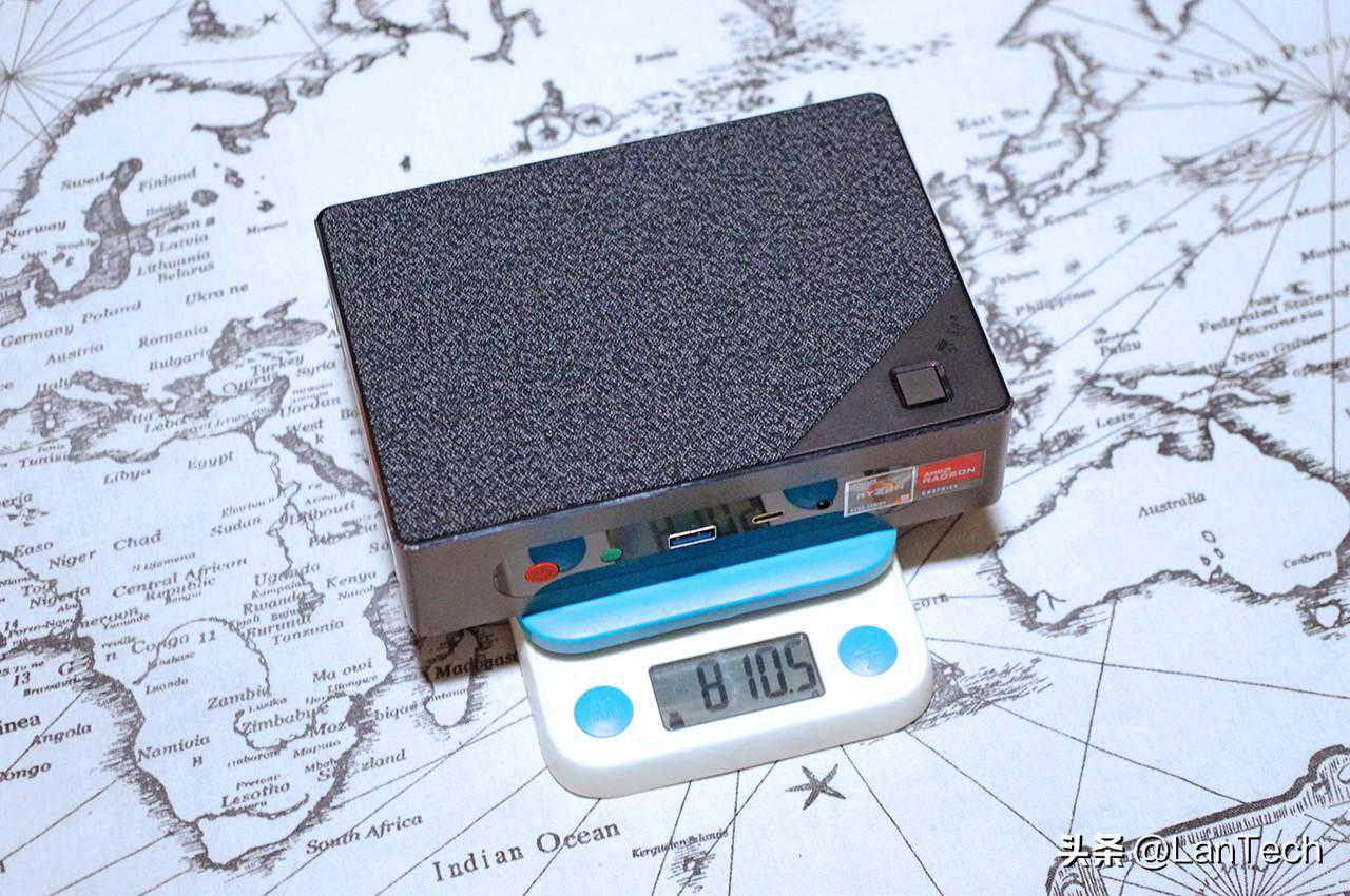 接着来看具体的测评,零刻GTR6高性能迷你电脑本体重量为810.5克,这主要是由于内部铜质散热模组的体积更大了: