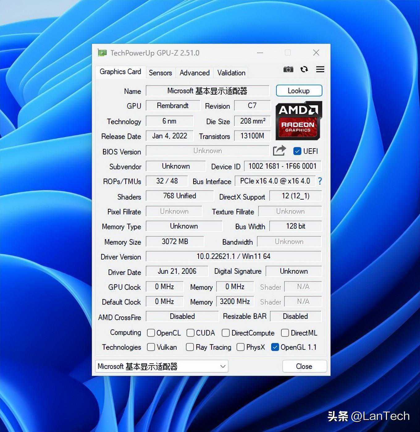 核显是这次Ryzen6000系列处理器的一大亮点,支持DirectX12: