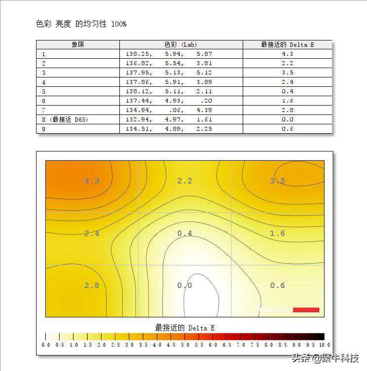 除去色彩上的观感体验,ConceptD3在色度均匀性上表现良好,整体上较为平均。不过或许是受制于笔记本屏幕厚度的限制,在亮度均匀性上,ConceptD3的中上部分亮度比较统一,而靠底部的区域会出现亮度方面的偏差,不过好在并不会影响正常的使用。