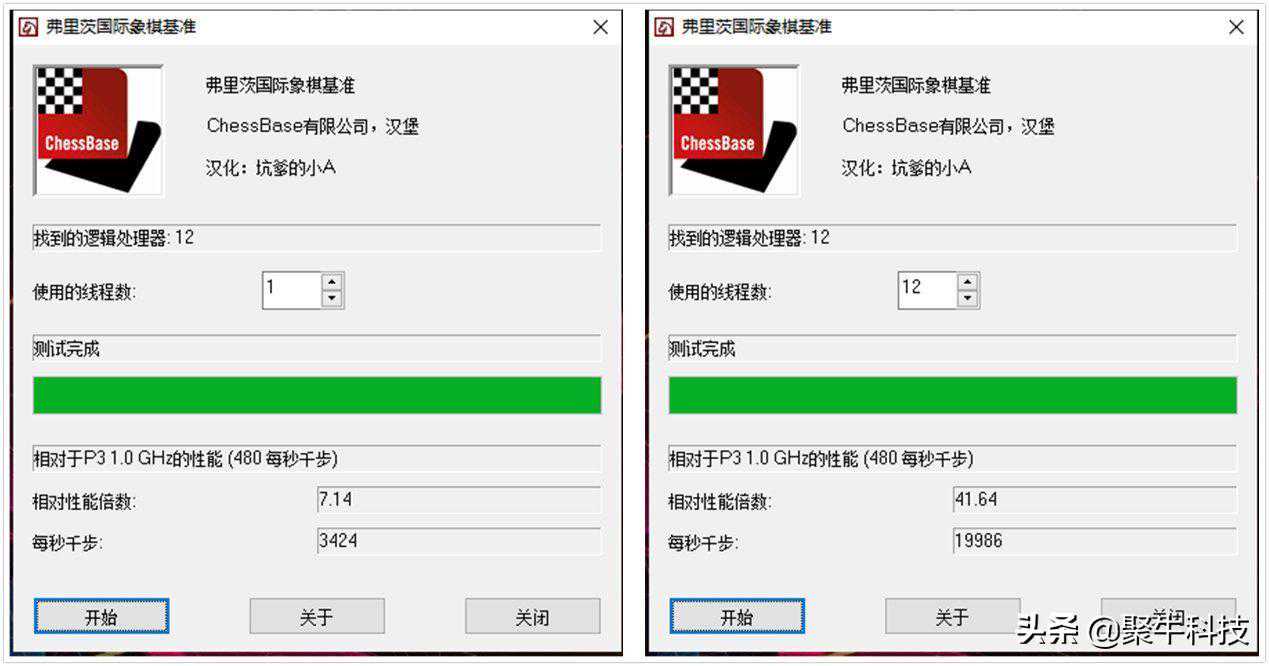 FritzChessBenchmark通过模拟AI思考国际象棋的算法,单线程得分为每秒3424千步,而跑满12现成的分数则可以达到19986千步,分数确实比较可观。