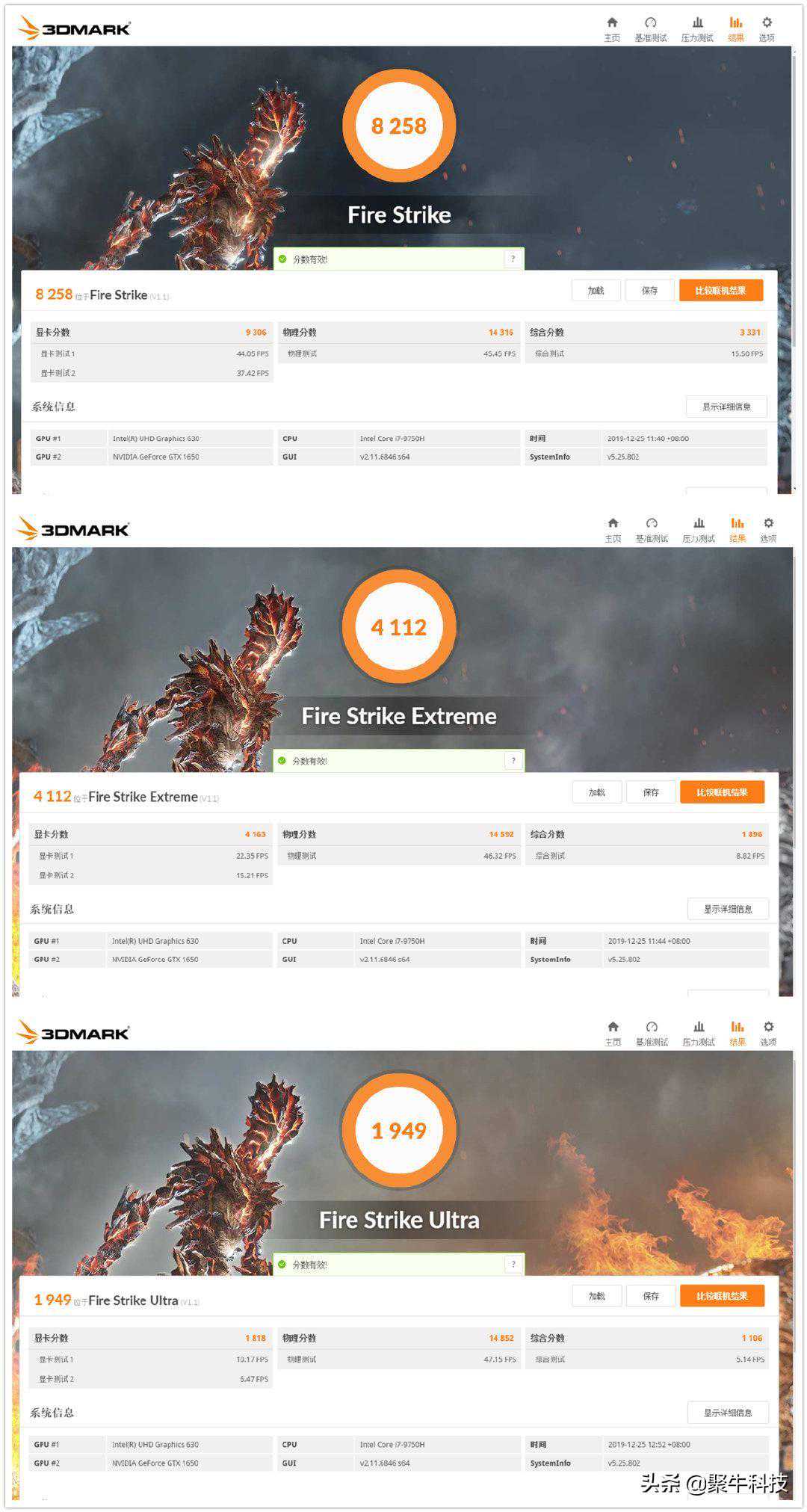 有关于DX11和DX12的游戏图形性能,3DMark分别给出了1080P的FireStrike、2K的FireStrikeExtreme和TimeSpy、4K的FireStrikeUltra和TimeSpyExtreme。其中基于DX11的FS、FSE、FSU测试的显卡成绩分别为9306、4163、1818,而基于DX12的TS、TSE成绩分别是3563、1579,已经初入了甜品级游戏本的行列。