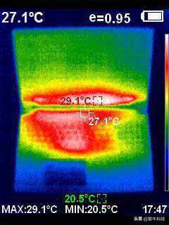 在室温约20度左右的环境下,通过热成像仪可以了解到,ConceptD3在待机状态的最高温度不过29度,处在一个非常健康的温度水平上。