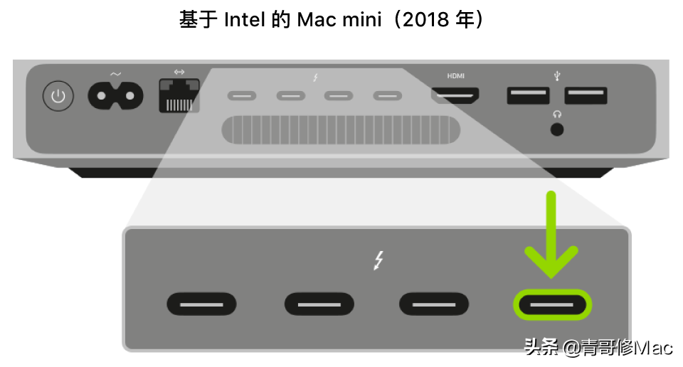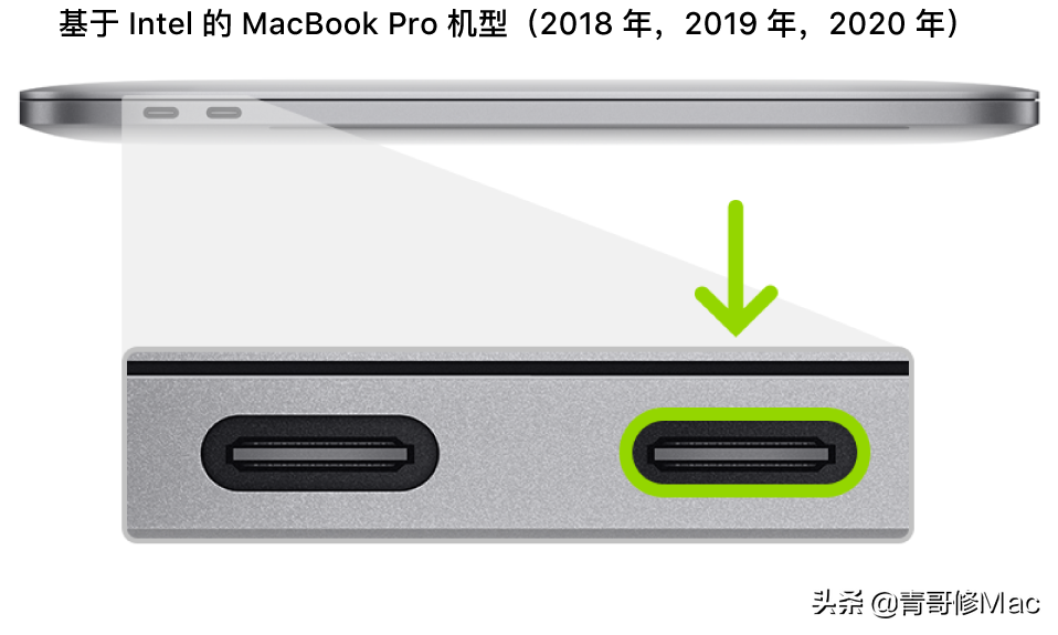 3.将USB-C线缆插入离HDMI端口最近的雷雳端口。