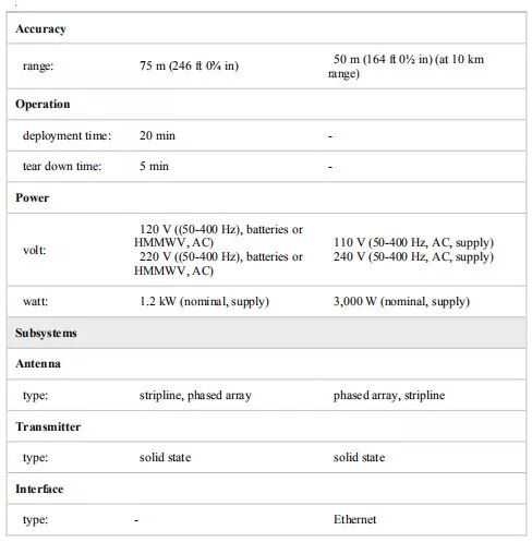 虽然SRC不会透露AN/TPQ-48(V)或AN/TPQ-50LCMR的配置,但美国陆军2010年2月的PB2011陆军/PE0604823A瞄准器预算理由文件在以下内容描述了AN/TPQ-50雷达: