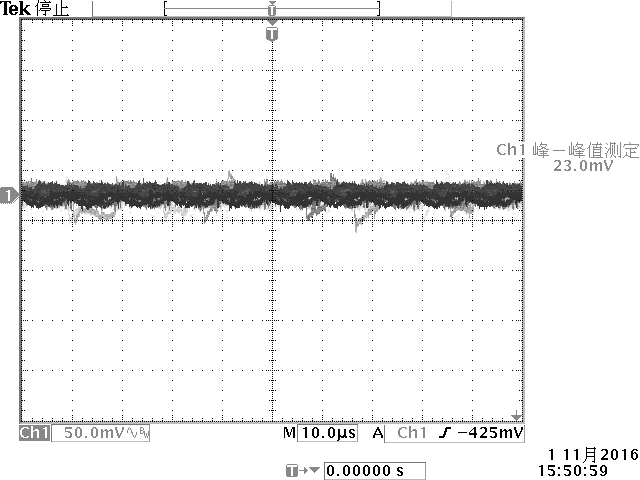 我们使用数字示波器在20MHz模拟带宽下按照Intel规范给治具板测量点处并接去耦电容,对电源进行满载纹波的测量。示波器截图分为低频下和电源开关频率下的波形,低频下的纹波峰峰值作为打分基准,开关频率下的纹波波形及测量值作为参考。