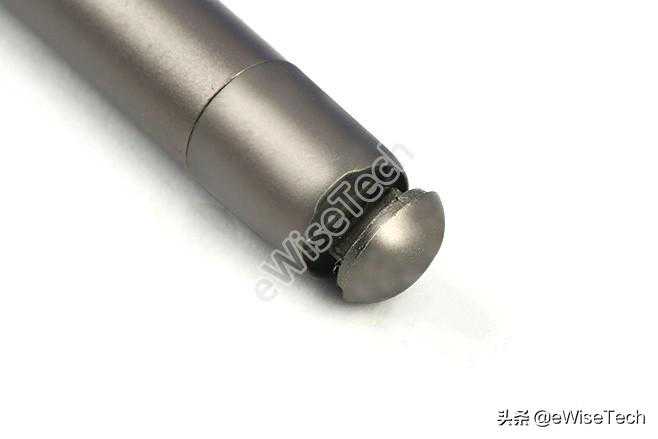 取下了笔盖和笔芯,我们发现这款笔是从底部进行拆解。可以看到,后方一小段是塑料的。我们就从塑料与笔杆连接处进行拆解。塑料盖有两层,小帽打开就是USB接口。