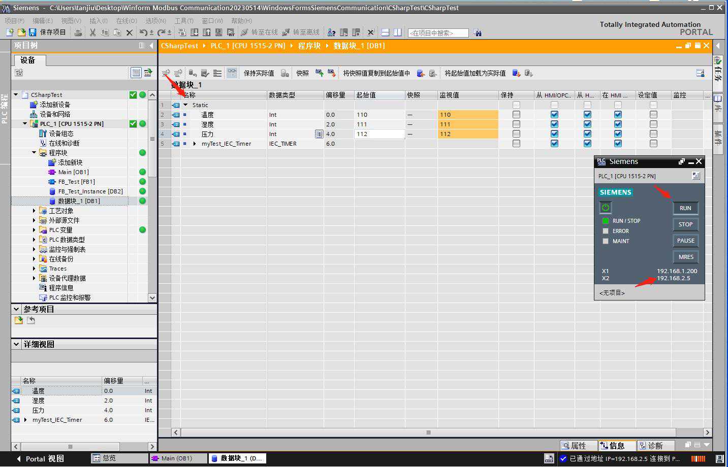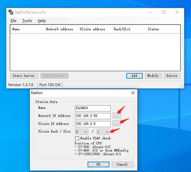 备注:PlcsimRack/Slot:选择0/1.否则不能仿真成功。