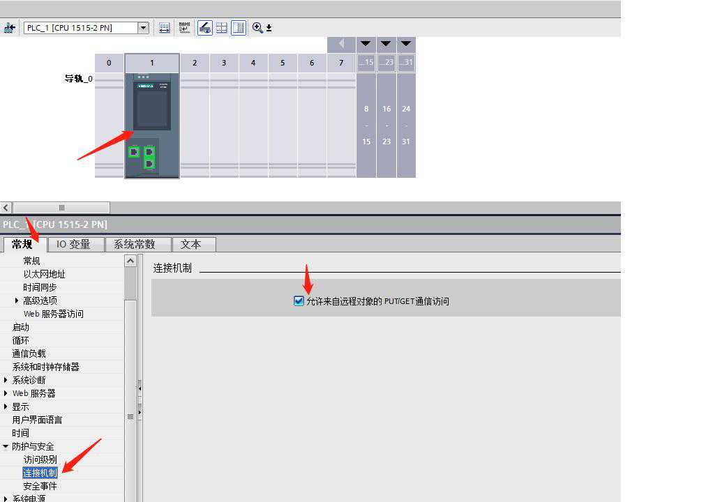 注意,PLC端需要勾选“允许来自远程对象的PUT/GET访问”。