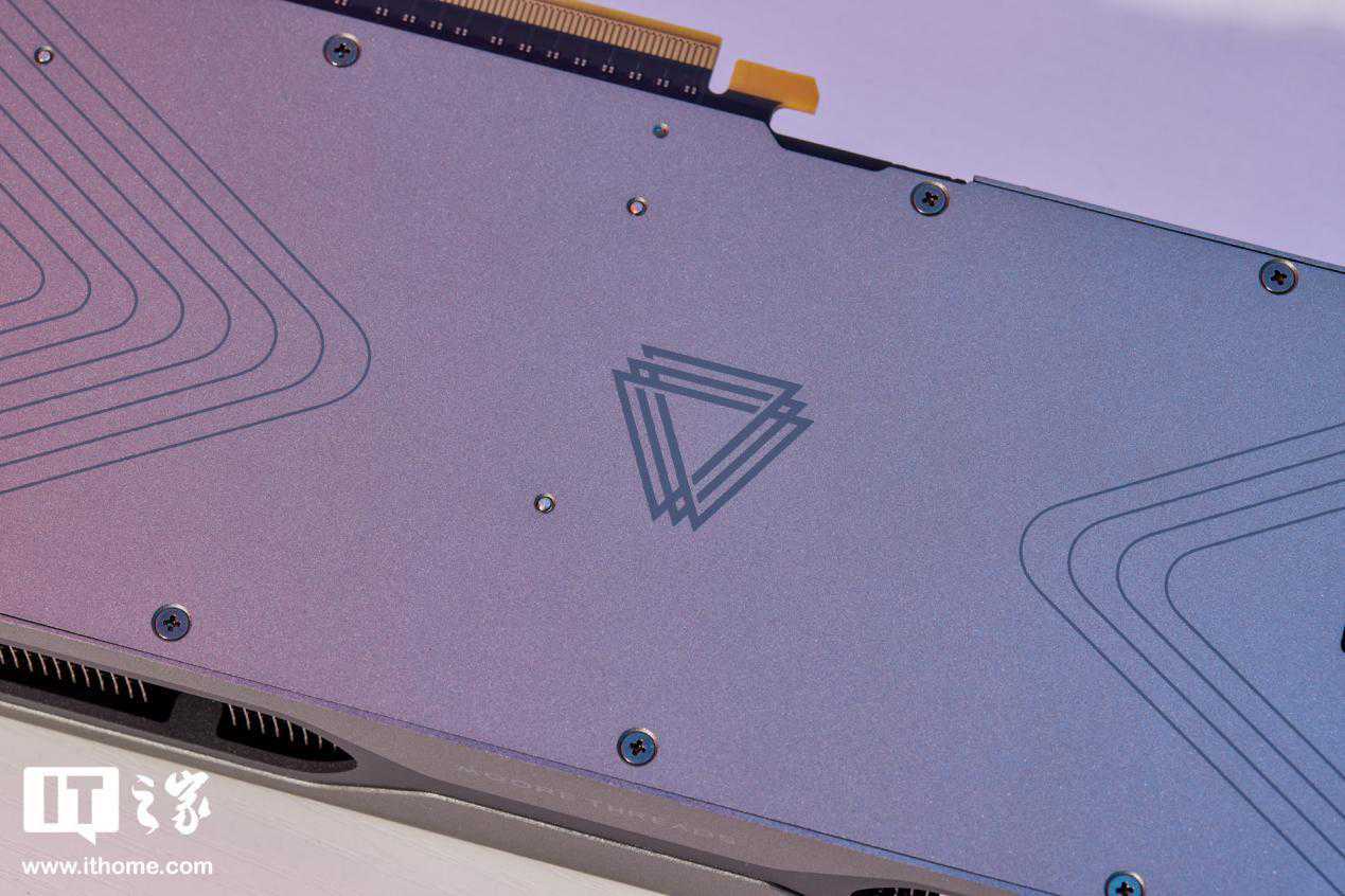 背板有一整块金属保护,中间有一个摩尔线程LOGO,右侧通风孔在通电后还会点亮,观感非常酷炫。