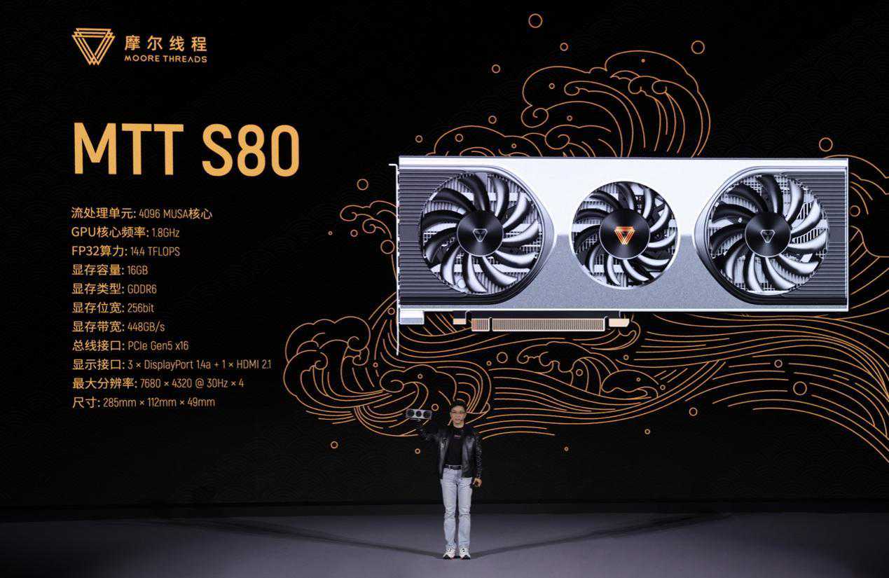 核心参数方面,MTTS80基于台积电7nm工艺打造,拥有4096个MUSA核心,主频1.8GHz、16GBGDDR6显存,显存位宽256bit,核心内集成了220亿个晶体管,内置MUSA架构通用计算核心以及张量计算核心,可以支持FP32、FP16和INT8等计算精度。