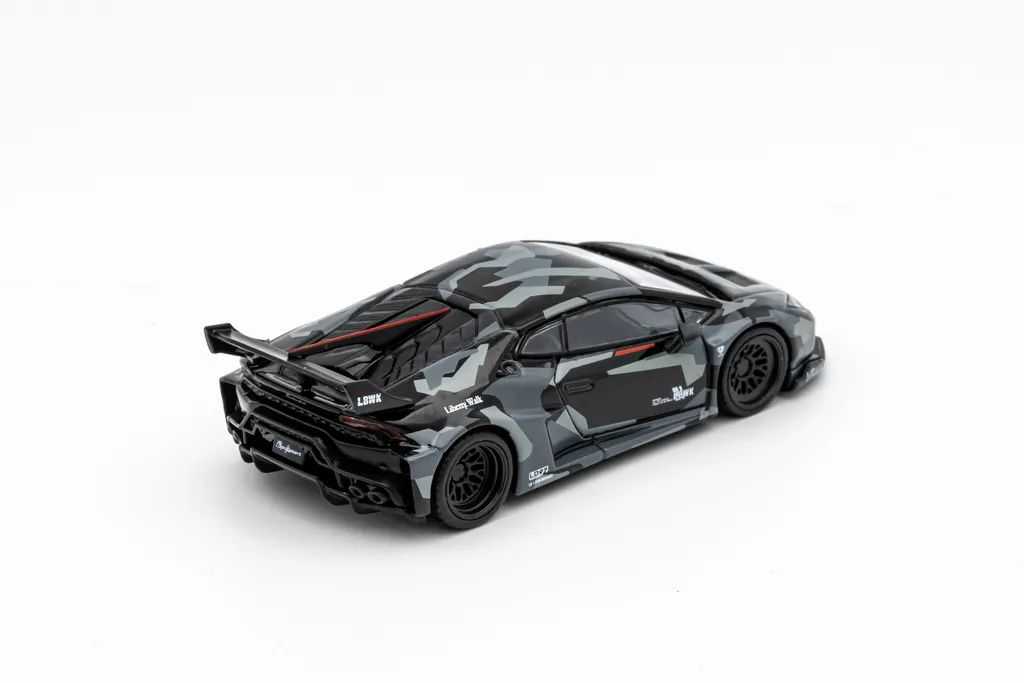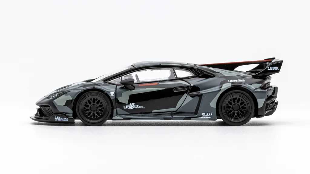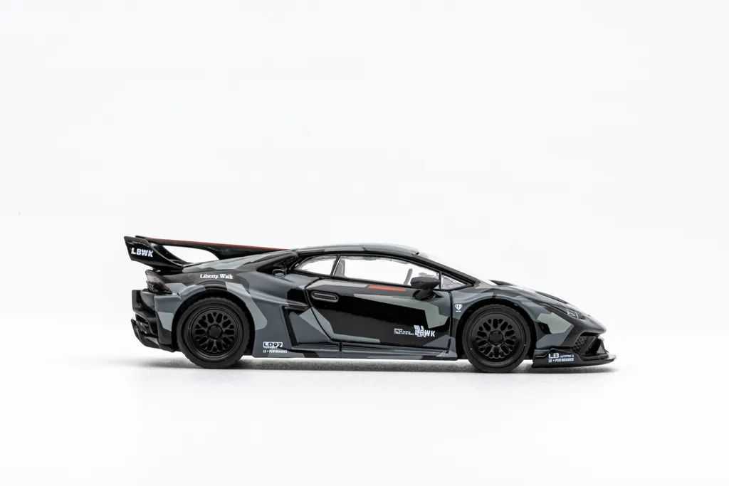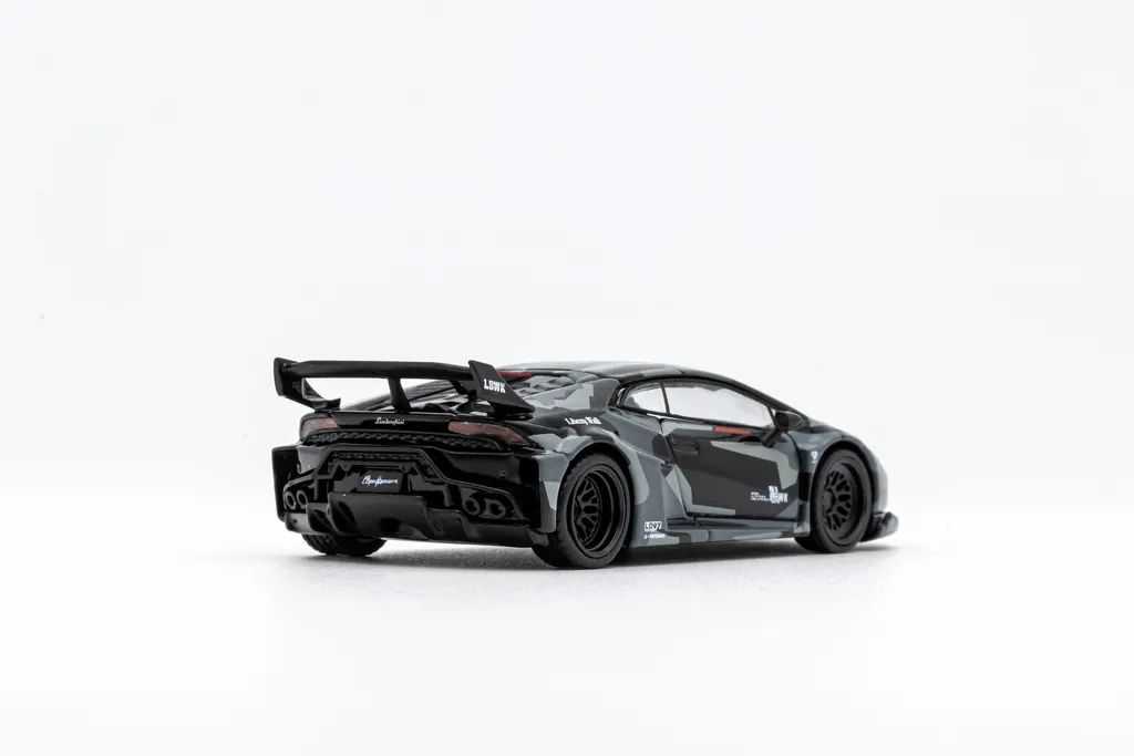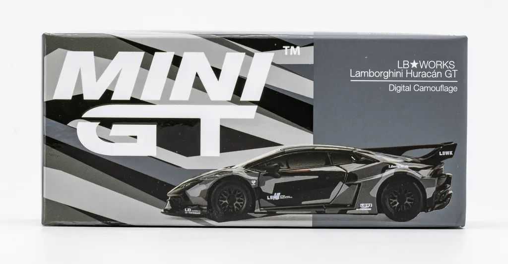 这次给大家带来的这款LBWorksHuracanGT模型来自MiniGT,产品的涂装比较有意思,整车涂装采用灰黑的迷彩色,模型的整体品质不错,价格不高,较具性价比。