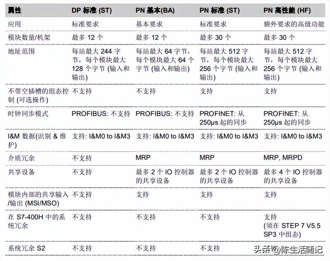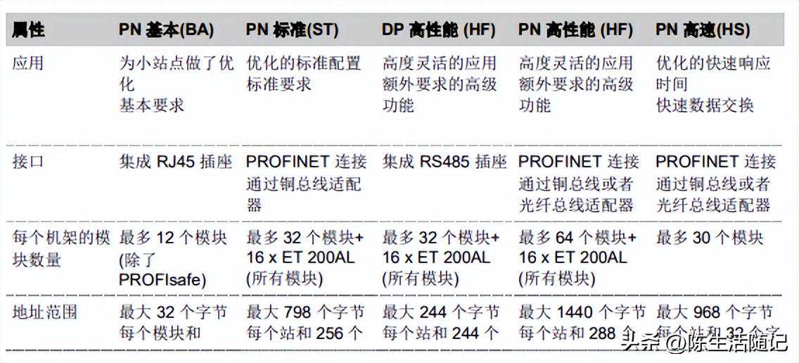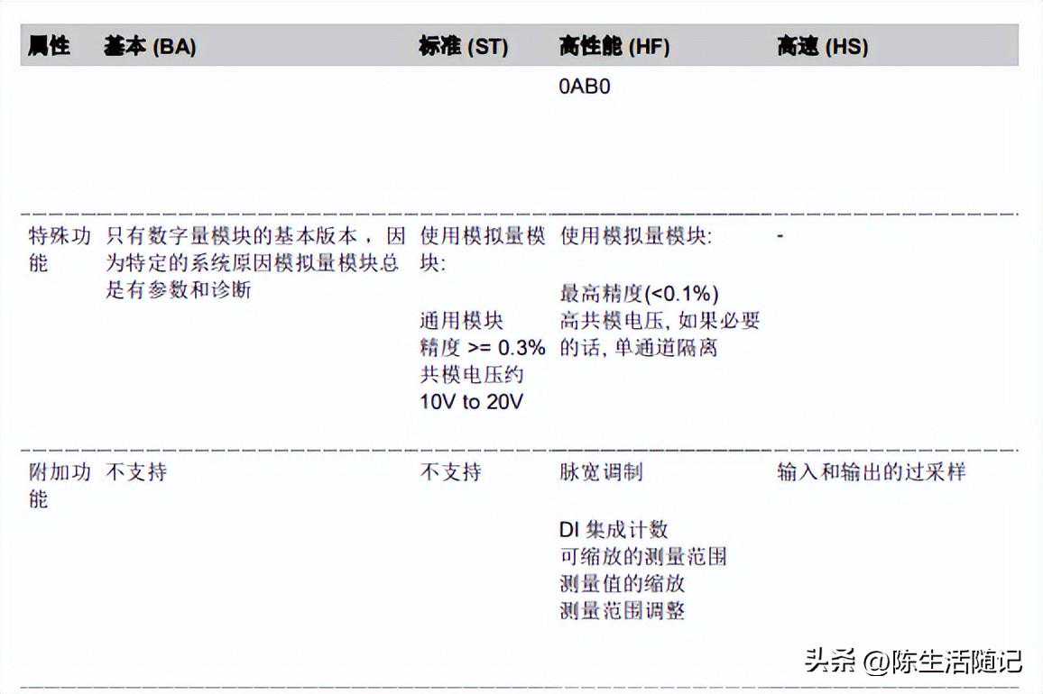ET200SP以及ET200MP的Basic(BA),Standard(ST),HighFeature(HF)和HighSpeed(HS)模块之间有什么区别: