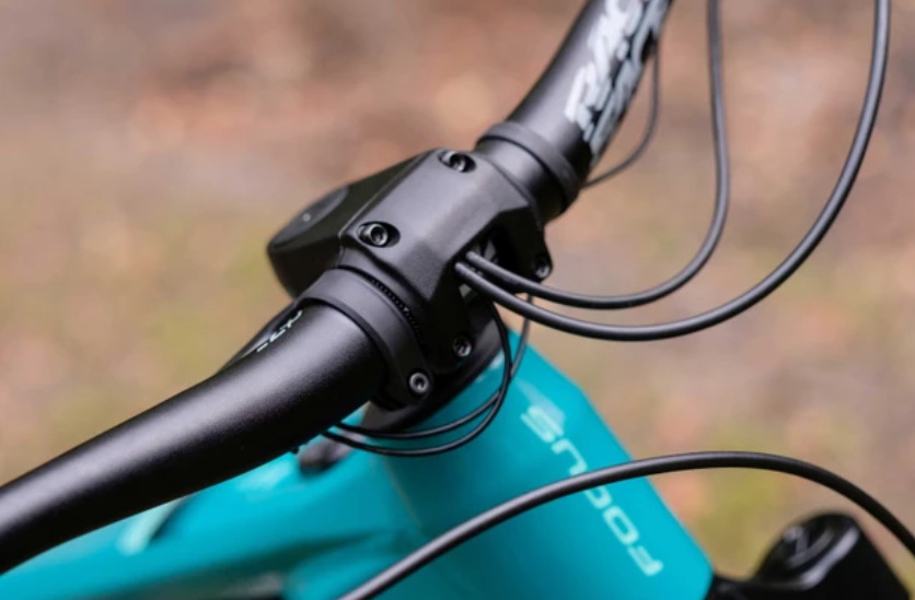 集成的走线设计,Focus将变速、刹车、升降座杆的线管穿过把立和头管,并将它们固定在下管中的电池上方。
