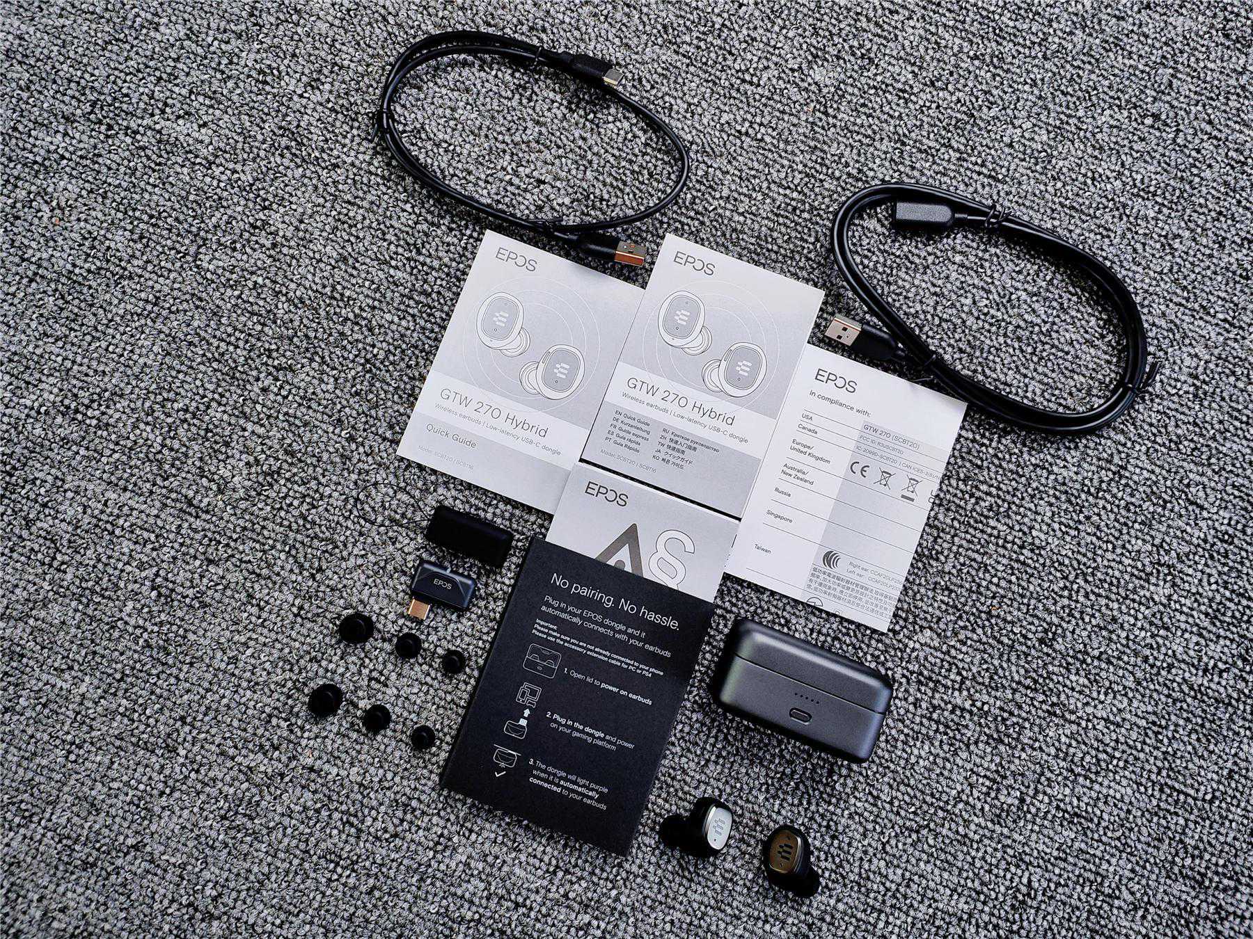 另外,可用于各种设备用的控制台1.5米USB-C和USB-A延长线,在不同设备之中,和不同场景中使用,可以达到不受限制的效果,而且这副音珀GTW270Hybrid游戏耳机的配件和说明书,也是我目前为止见过的无线耳机中,最多最齐全的一副,单说明书就有好几本、延长线、USB-C(Type-C)适配器、适配器硅胶保护套(携带套)、以及共4套不同规格的硅胶耳塞(包括耳机自带1套),可以说是让我眼花缭乱,收获满满。