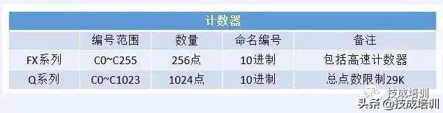 FX的计数器分普通计数器与高速计数器,而Q系列只有普通计数器
