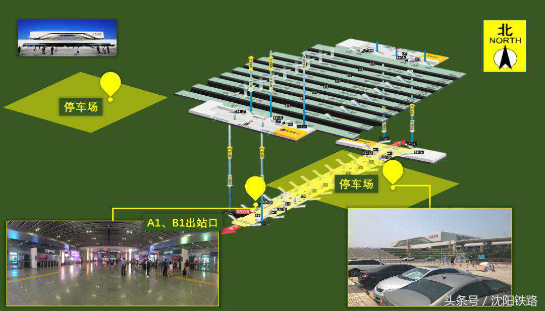 大连北站站房南一楼两侧设有停车场,方便旅客停车接、送站。