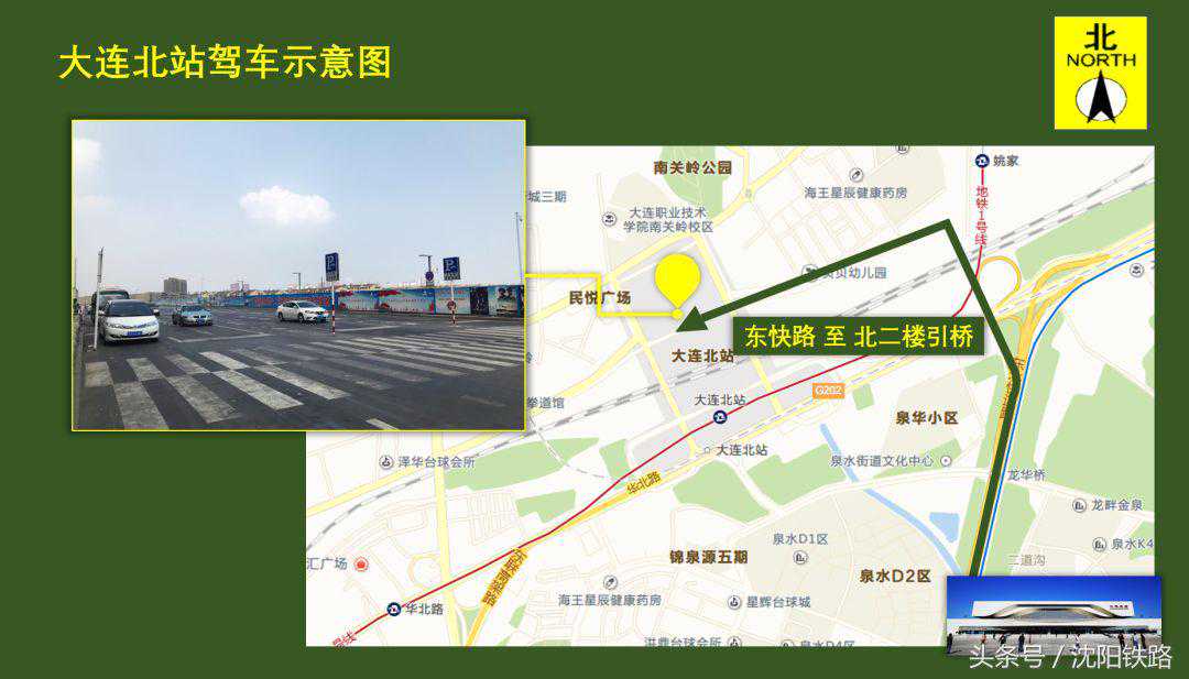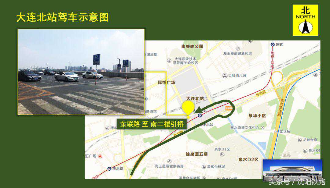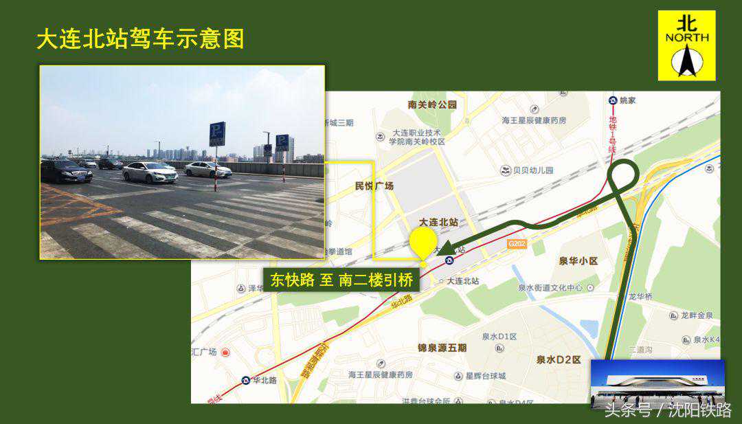 可按地图指示直达大连北站南、北引桥接送站。目前大连北站启动监控抓拍设备,全方位全时段进行交通管控,主要抓拍一下三种:1.各平台上下桥匝道停放的车辆。2.落客平台上未在停车泊位内停放的车辆。3.停车泊位内超3分钟停放的车辆。
