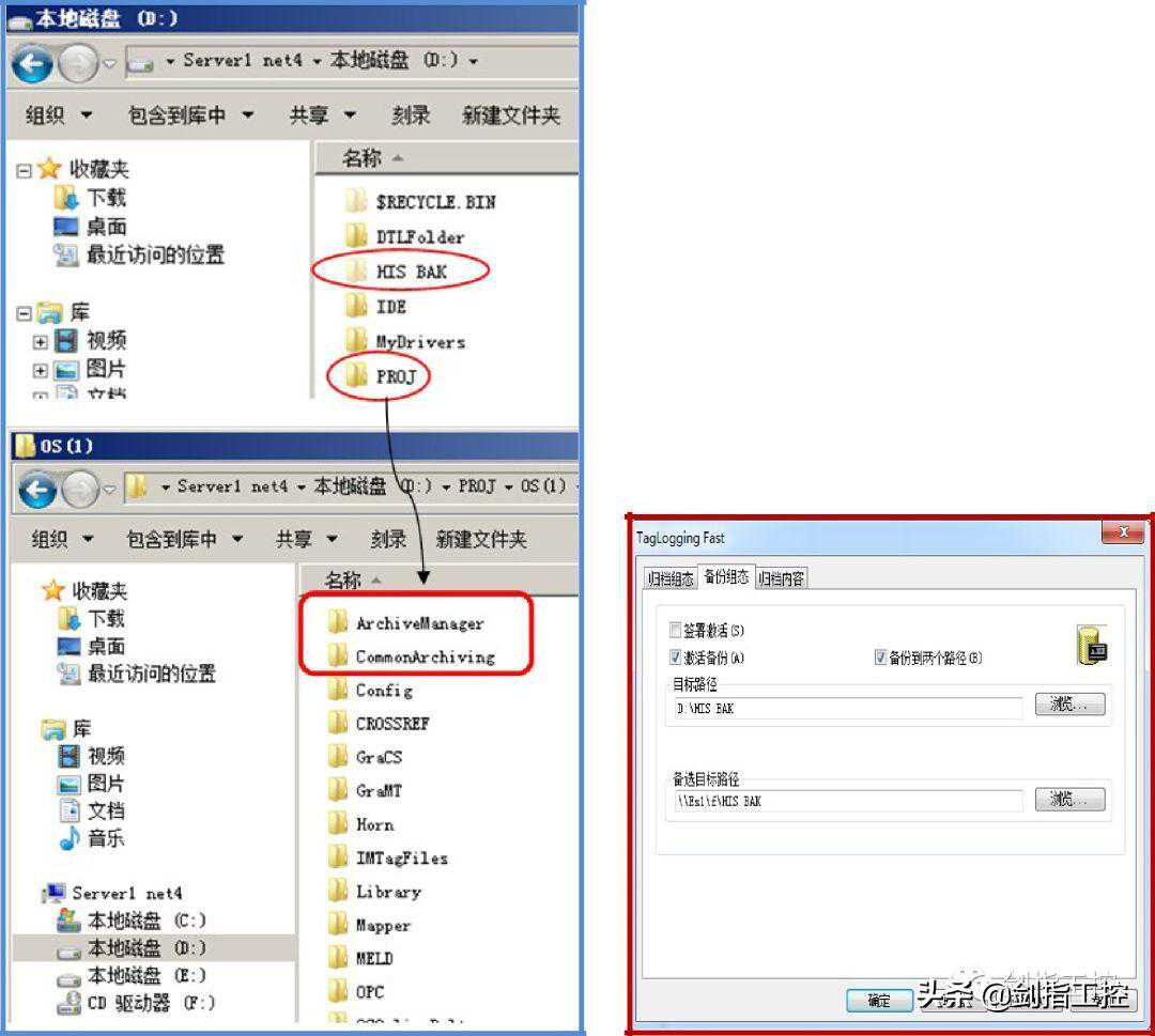 因此工程师站的公用备选路径中会出现归档文件互补的情况,而单个服务器上的备份路径D:\HISBAK中的文件是不完整的。在冗余服务器切换后,备份路径中会生成不同的以服务器计算机名称为前缀的数据文件。