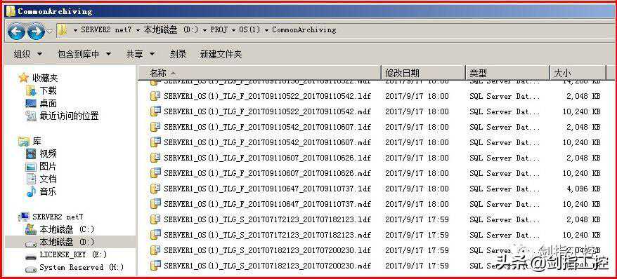 例如下图中,最下面的两个数据片段,后缀.ldf的是日志文件,后缀.mdf的是数据文件,开始的时间是201709130648+8小时=201709131448,即9月13日下午2点48分开始记录,需等到该文件归档的数据大小大于100M或者时间到了5:22,才会生成一个结束的时间标志,从而形成一个完整的文件。