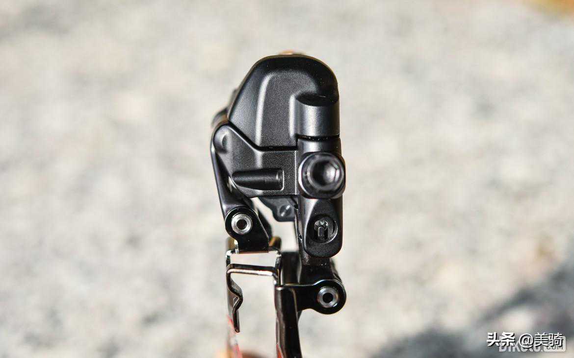 R8150前拨也是使用与DA完全相同的“毫无电机痕迹”造型。就这么个小小的前拨,Shimano都能抠出20克重量差异,不得不佩服Shimano的工程造诣。