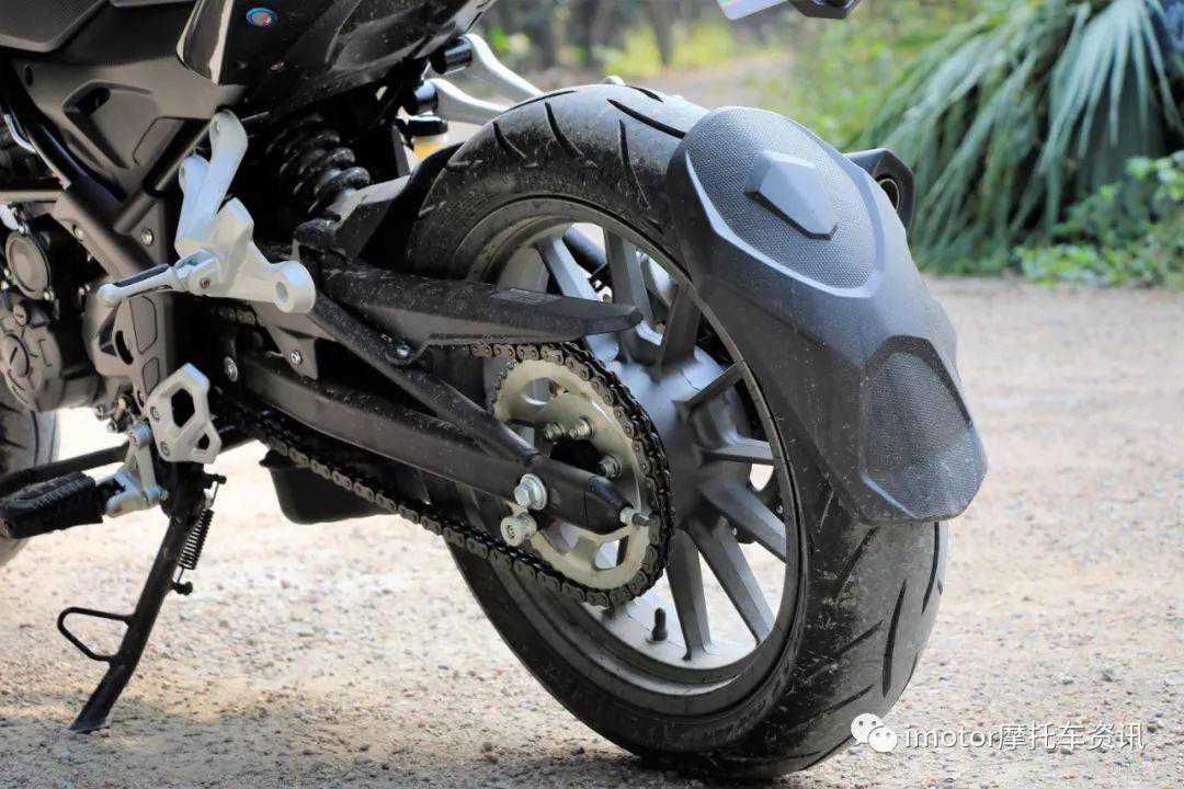 TRK251的后轮规格为150/60-ZR17,一样采用运动化的铝合金多辐轮圈,轮胎配备的同样是象牌M5轮胎。