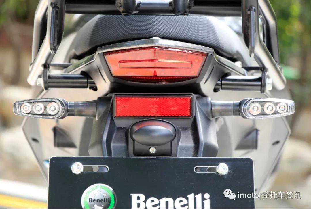 TRK251的尾灯设计并没有大灯那么有特色,一字型状的LED行车灯,刹车灯则是外侧一圈的LED灯条,夜晚的辨识度足够。后转向灯一样采用LED灯源并设计在后尾灯下方。