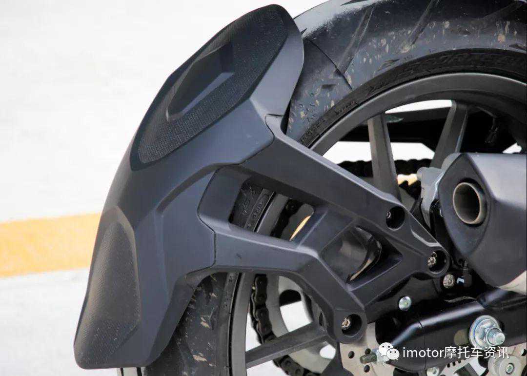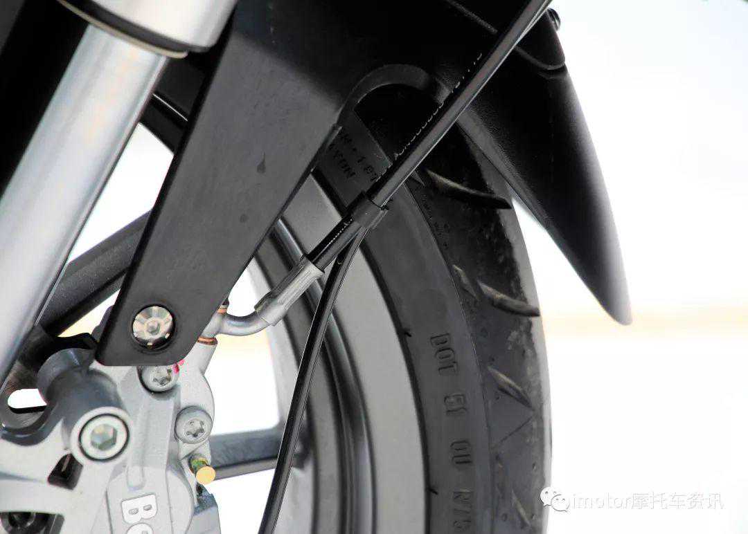 此外TRK251装配象牌的M5轮胎,前110后150的宽胎能在弯道里紧紧咬住地面,提供既稳定又有循迹性的线路。